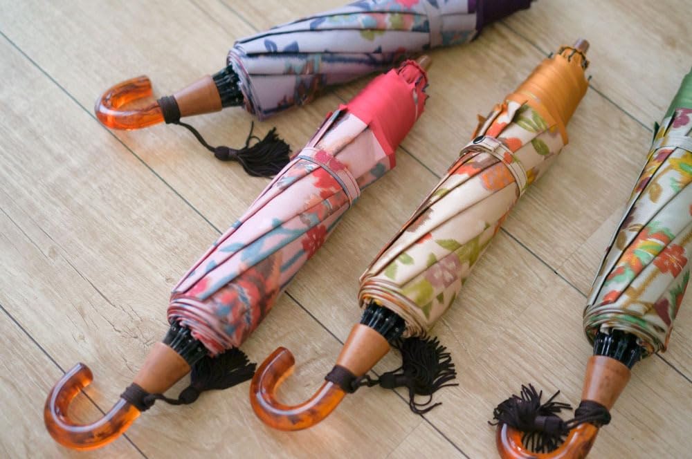 Наслаждайтесь блестящей тканью Koshu-ori и прекрасным натяжением зонта, изготовленного руками мастеров.