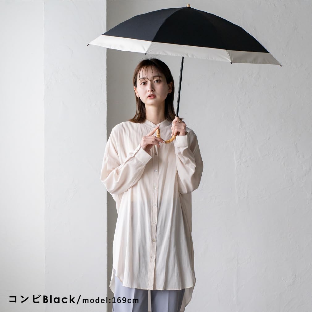 Складной зонт, полностью затемняющий, складывается в 2 стороны, 2 шага, 8 спиц [100% светозащита, 99,9% УФ-защита или более] Класс 1 светозащиты, зонт от солнца и дождя, легкий, большой зонт, затемняющий зонт, защита от УФ-излучения, изогнутая бамбуковая ручка, бамбуковая ручка, чехол в комплекте, стекловолокно (вышивка, комбинирование, кант) pru-30177z [aroco/Aroko] Подарок на День матери