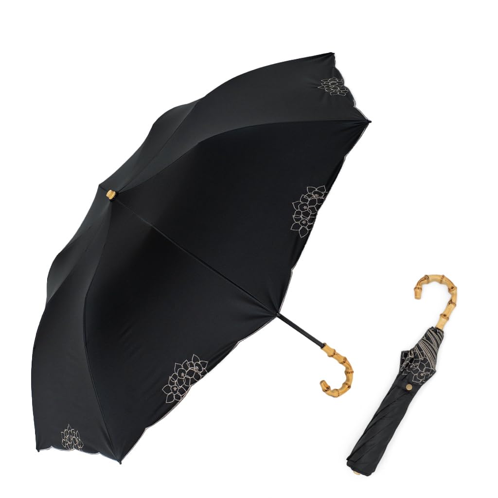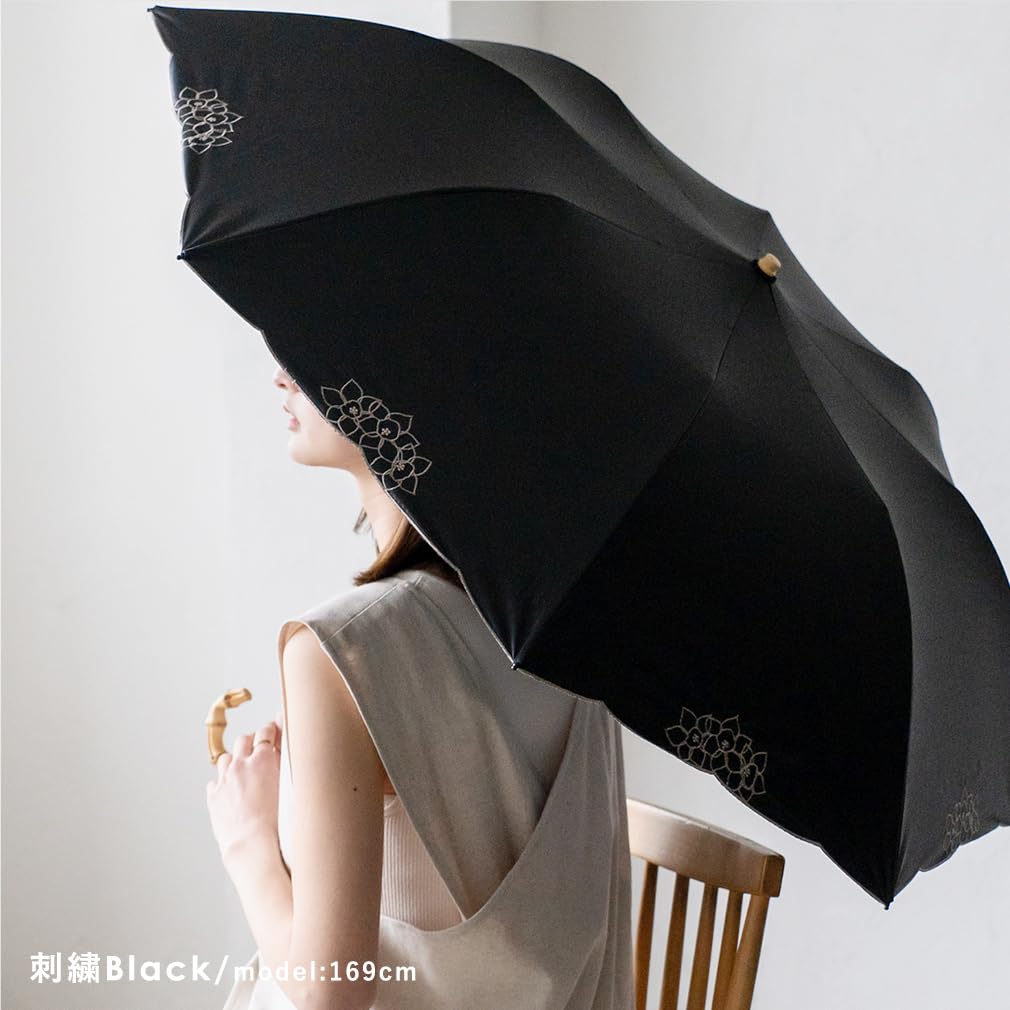 Зонт, полностью затемняющий, большой размер, складывается в 2 слоя, 8 спиц [степень затенения 100%, степень защиты от УФ-излучения 99,9% или более] Класс затемнения 1, зонт от солнца и дождя, легкий, большой зонт, затемняющий зонт, защита от УФ-излучения, изогнутая бамбуковая ручка, бамбуковая ручка, чехол в комплекте, стекловолокно (вышивка, оборки, канты) pru-30176z [aroco/Aroko] Подарок на День матери