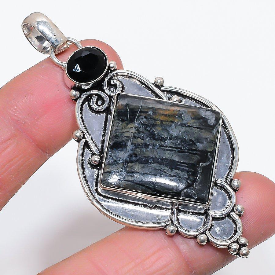 Яшма Пикассо, Шпинель Ручная работа 925 Стерлинговое серебро Ювелирный кулон 2,96"