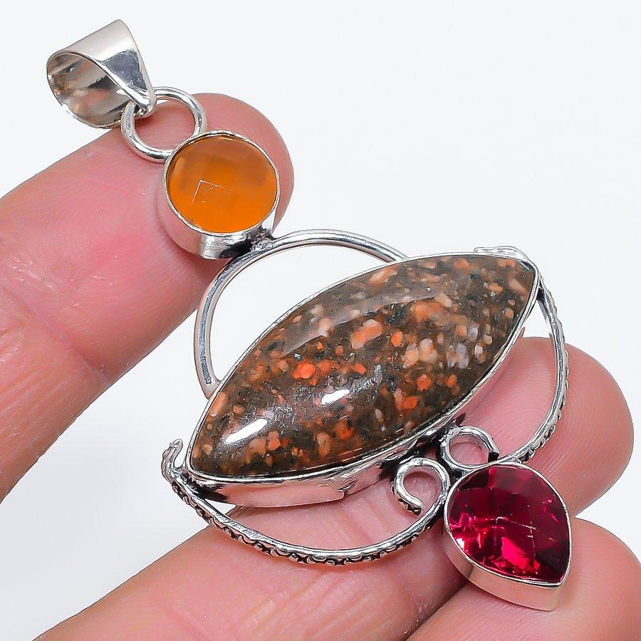 Океанический Яшма, Сердолик Ручная работа Ювелирная подвеска из серебра 925 пробы 2,68"