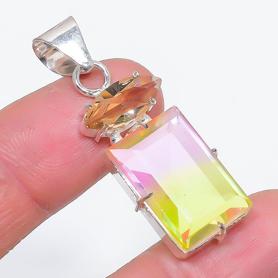 Подвеска из стерлингового серебра 925 пробы с двухцветным турмалином, ручная работа, 1,77 дюйма