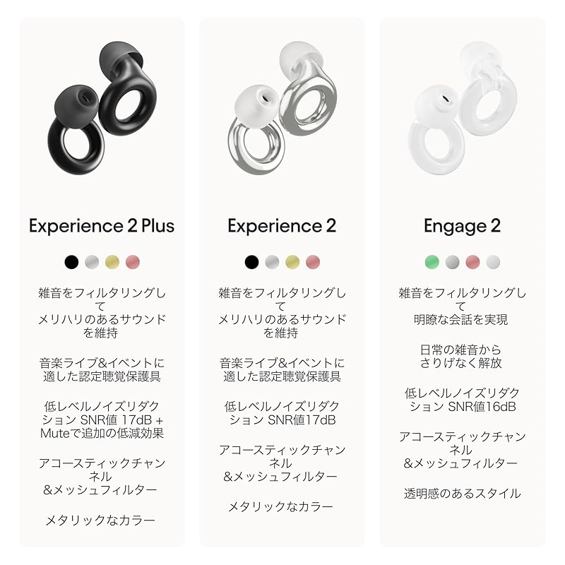 СЕРТИФИЦИРОВАННАЯ ЗАЩИТА СЛУХА — Loop Experience 2 признан сертифицированным средством защиты органов слуха, защищающим ваши уши от шумового повреждения и обеспечивающим душевное спокойствие в шумных ситуациях. Experience 2 обеспечивает 17 дБ (Значение SNR) шумоподавления фильтра.