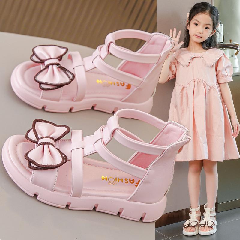 Сандалии для девочек, летние детские сандалии принцессы, туфли для девочек с бантом, модная повседневная нескользящая детская пляжная обувь