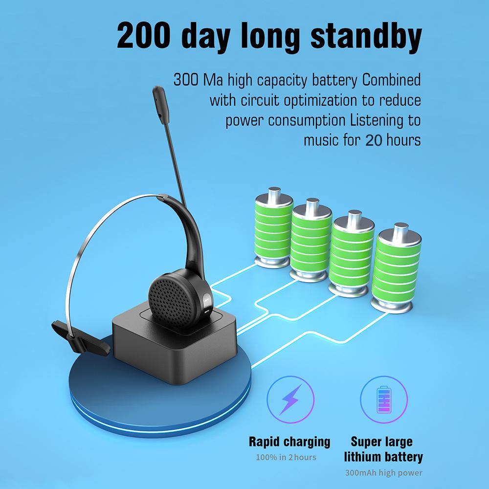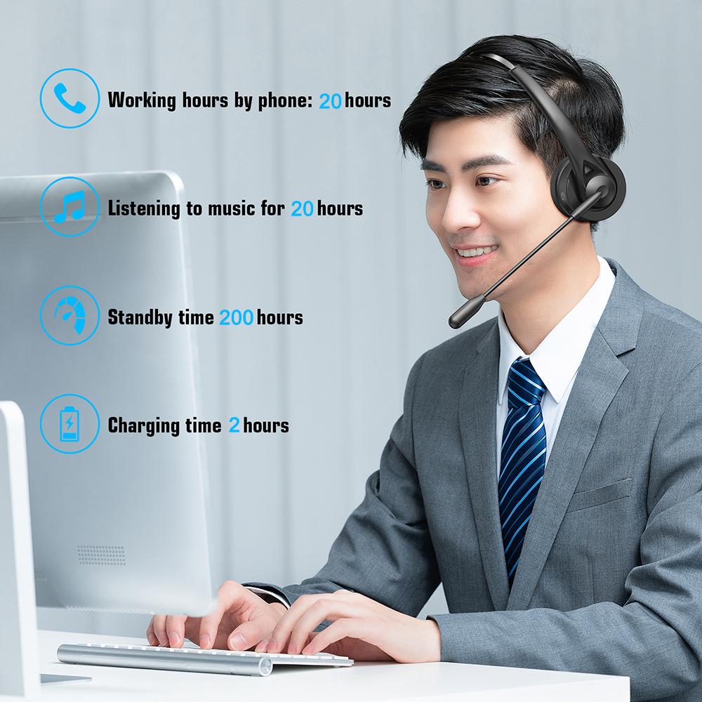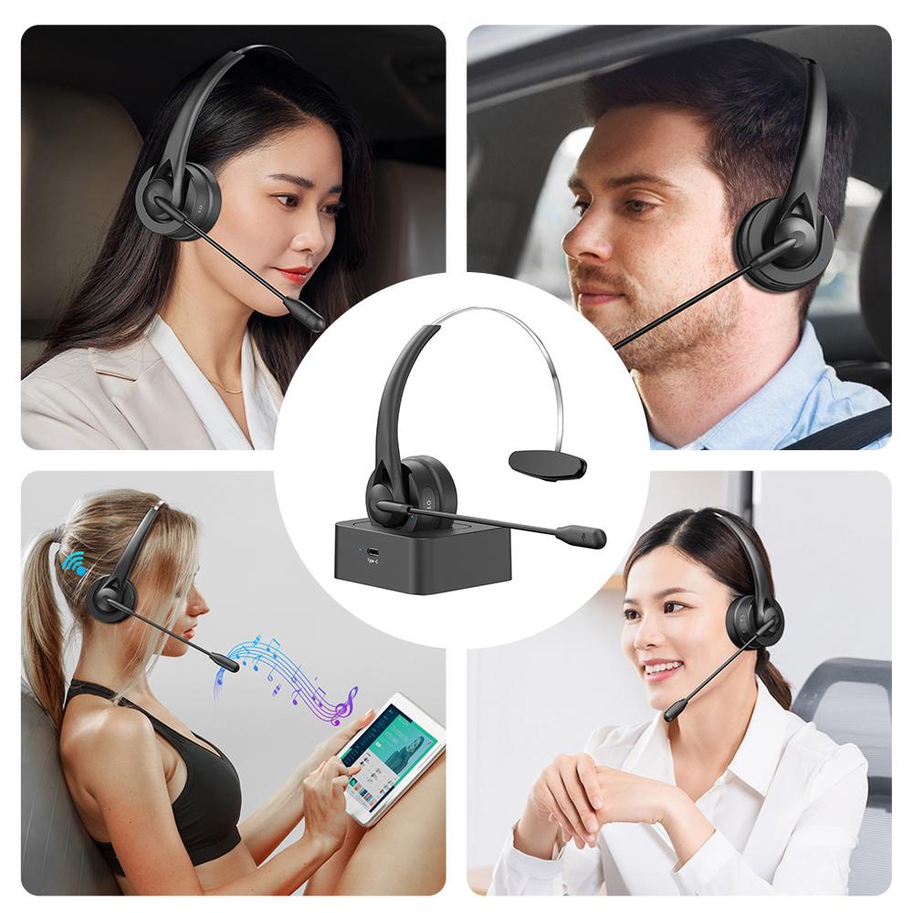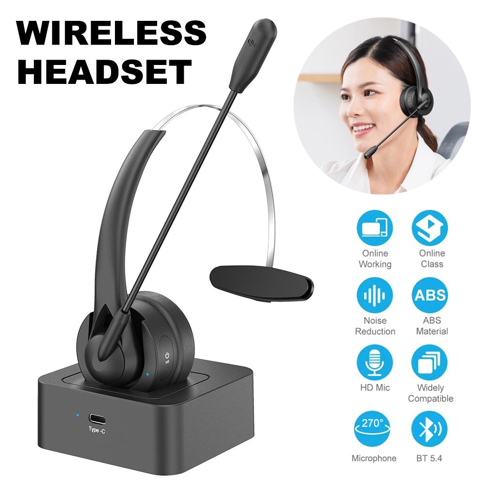 Гарнитура с шумоподавлением Bluetooth 5.4, микрофоном, зарядной док-станцией, офисной гарнитурой для колл-центра, время работы в режиме разговора до 20 часов