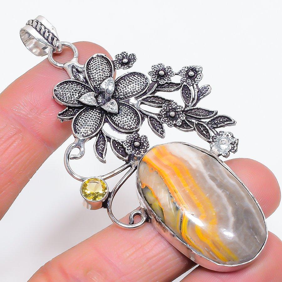 Шмель Яшма, Цитрин Ручная работа 925 Стерлинговое серебро Подвеска 3,27" W5j40