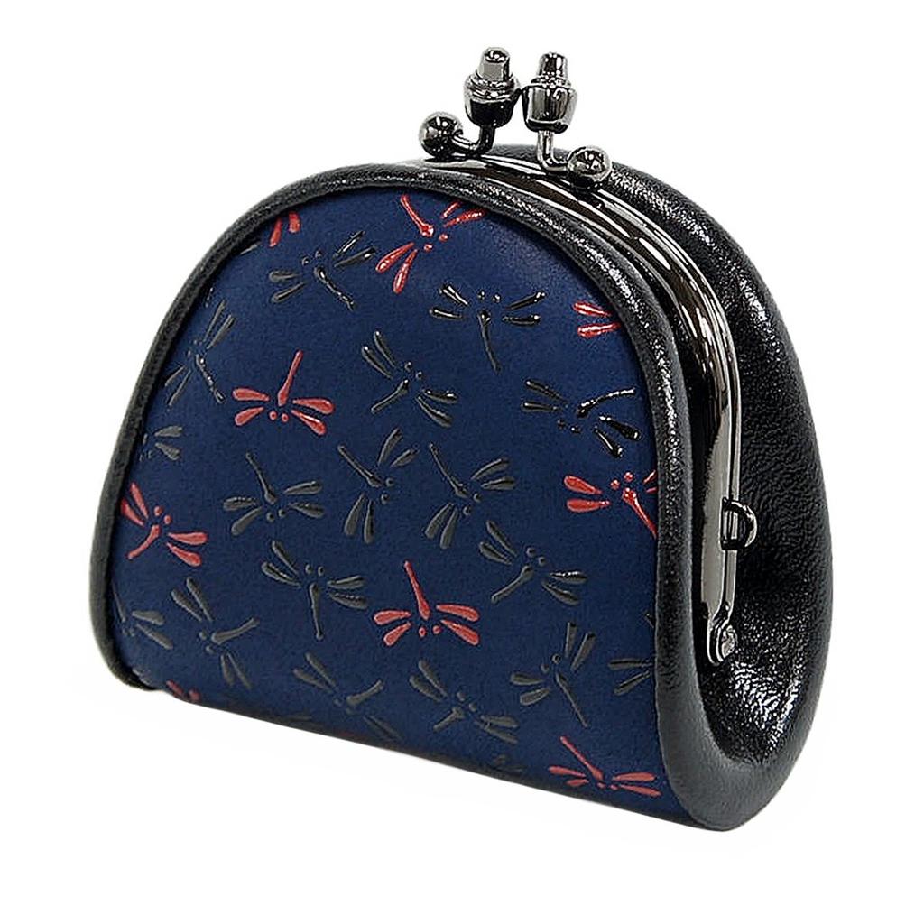 Indenya Inden Кошелек для монет Оленья кожа Нагоми Узор Стрекозы Темно-синий x Черный Красный лак 7518