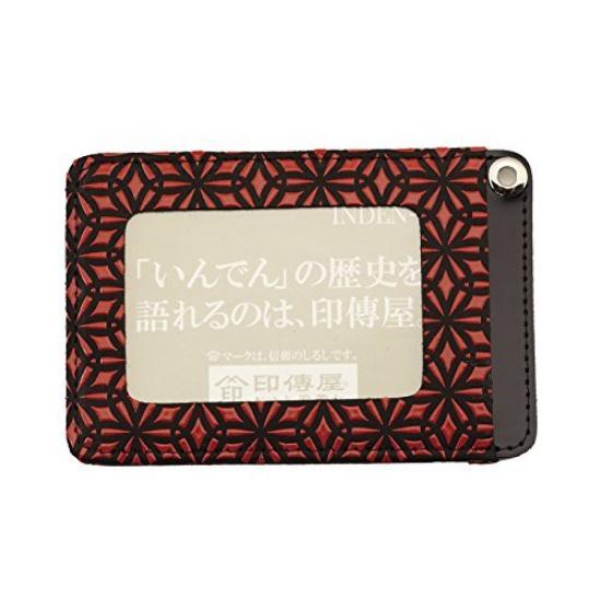 Inden Indenya Yushichi Uehara Indenya Genuine leather Pass holder Pass holder Model number 2525 Black background x red lacquer Hemp leaf pattern