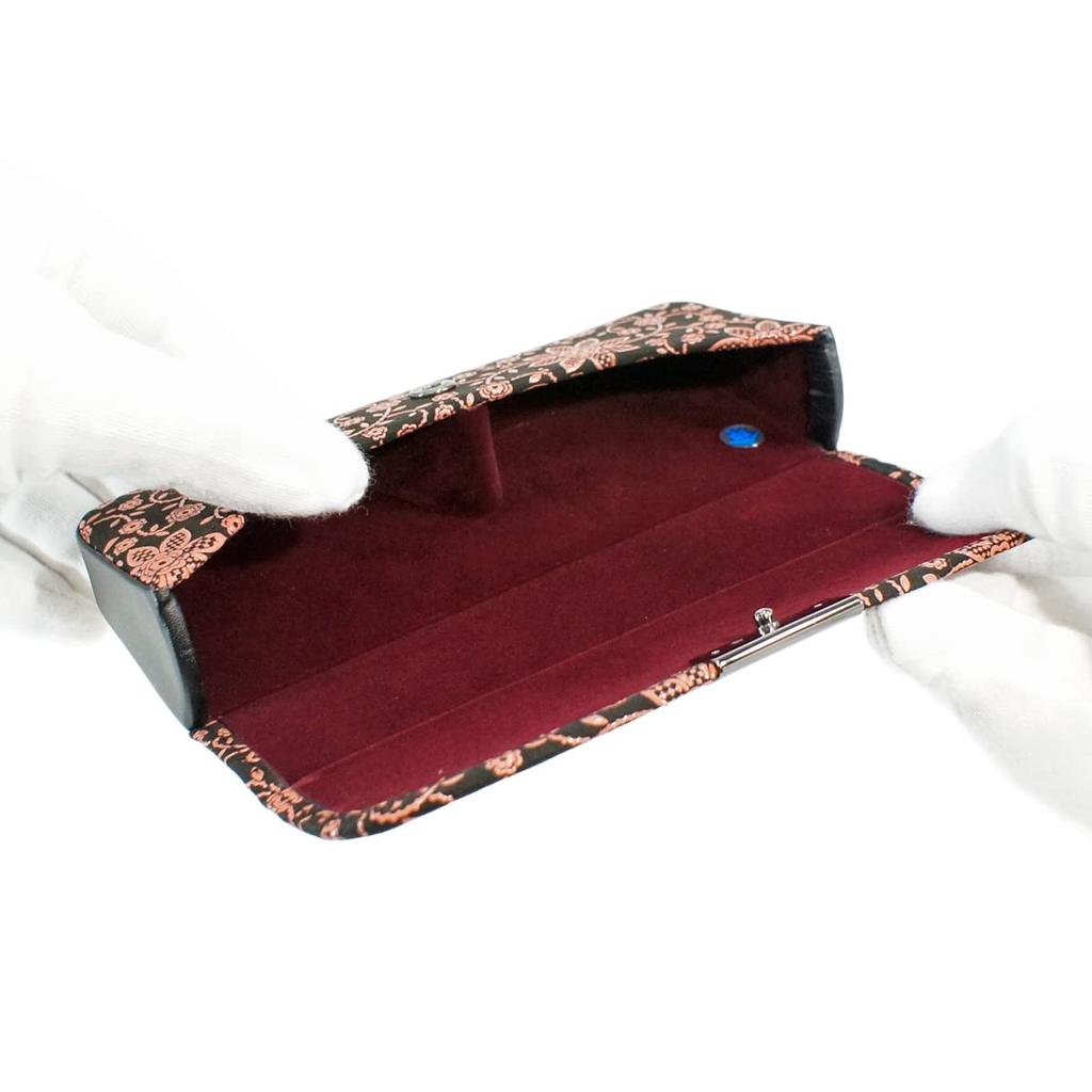 Футляр для очков Inden H Кожа оленя Черный x Розовый Лак Узор Клематис [Indenya] 4206-51-169