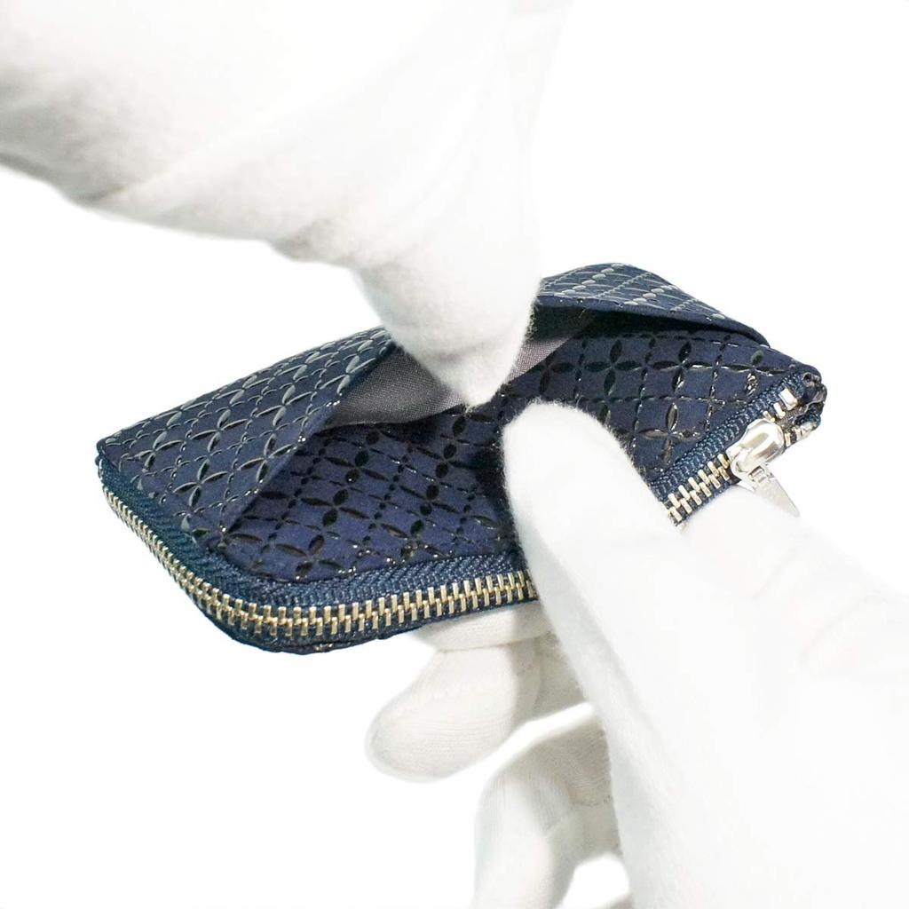 Indenya Inden Кошелек для монет F Кошелек для монет 05 Оленья кожа Темно-синий x Черный лак Перегородчатая эмаль Соединяющийся узор 1005-04-179