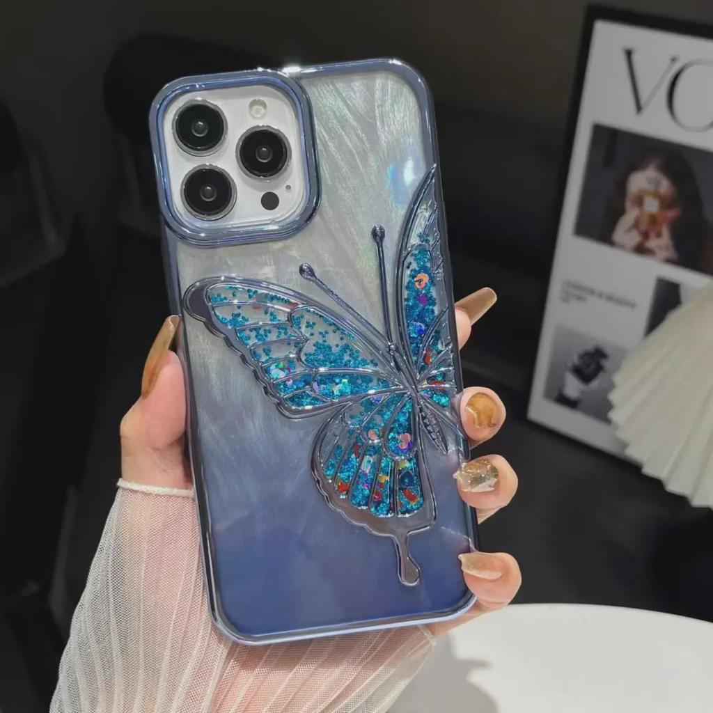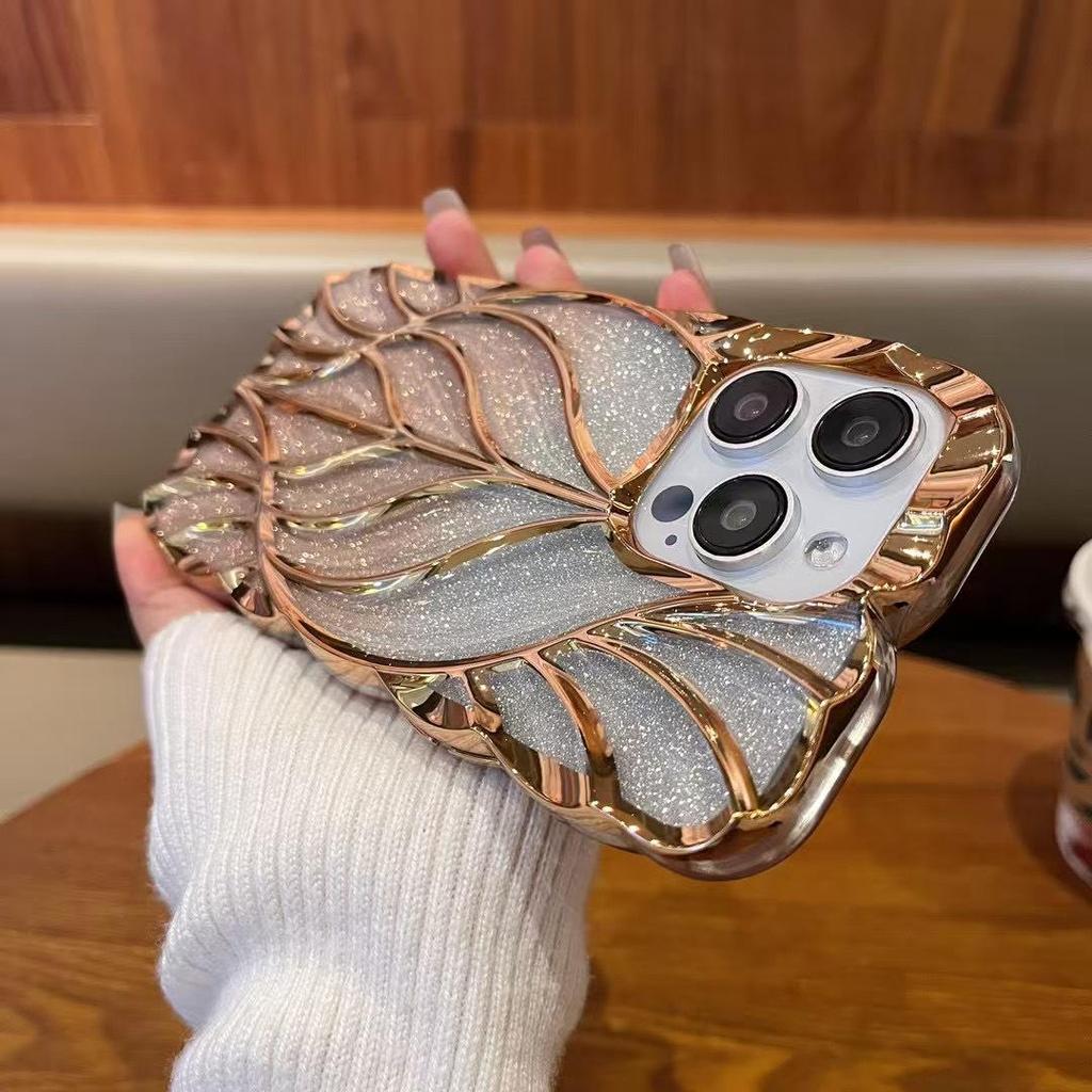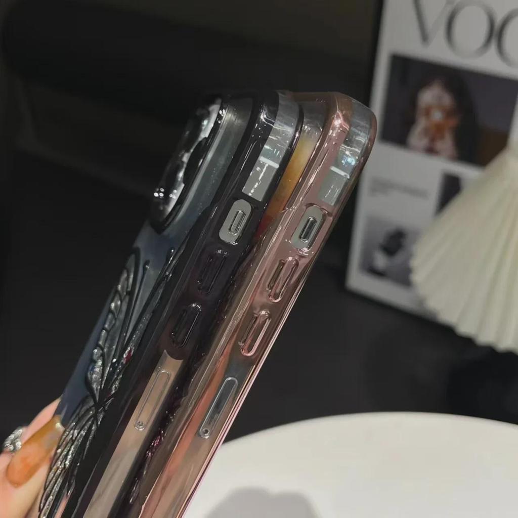 Чехол-бабочка с гальваническим покрытием для iPhone 13/14/15 Pro Max и 12 Apple с картой Feather Yarn