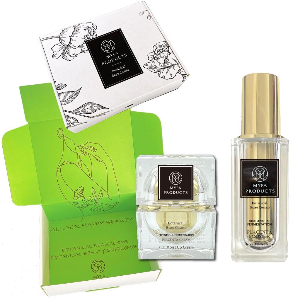 Подарочный набор крема для лица, придающего коже упругость, блеск и увлажнение, содержащий сыворотку красоты в виде спрея, изготовленную из неразбавленного раствора ферментированной выдержанной плаценты и жидкого экстракта ферментированной выдержанной плаценты.