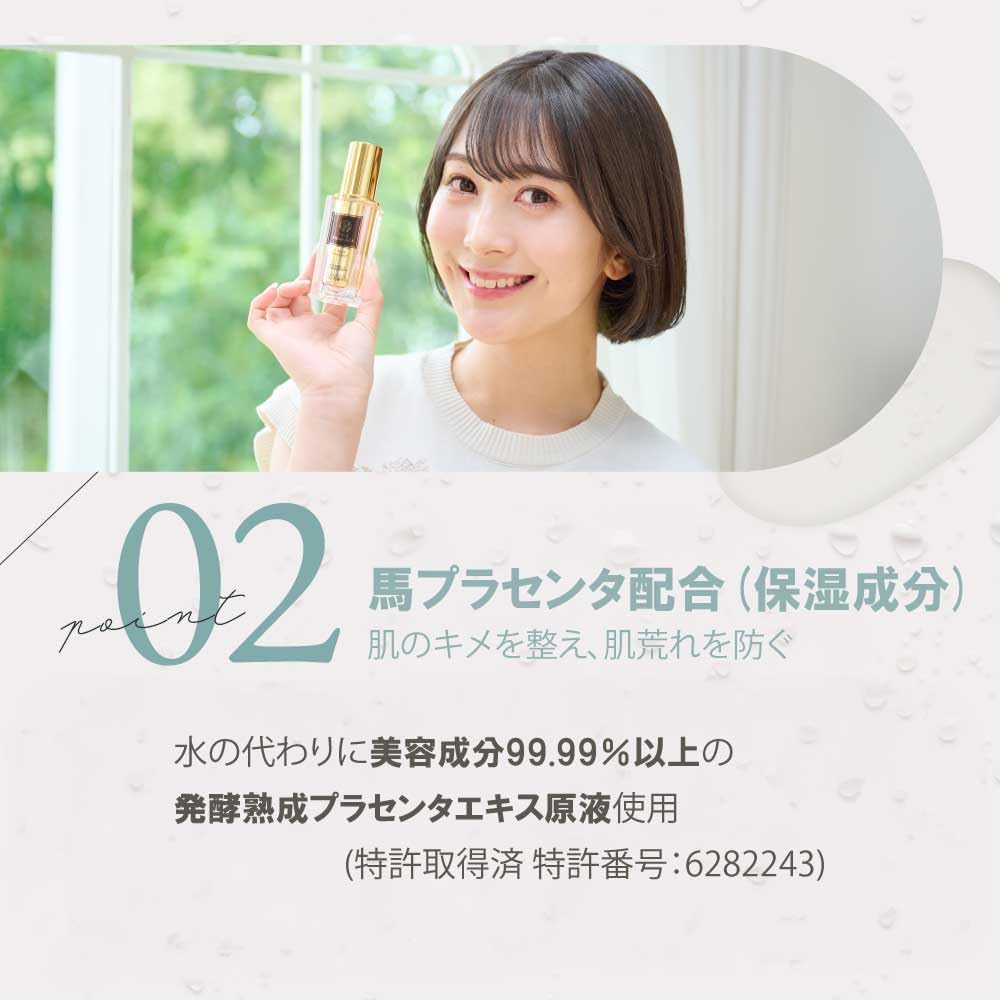 Сыворотка красоты в виде спрея, изготовленная из ферментированного и выдержанного концентрата плаценты.. Используя неразбавленный раствор ферментированного выдержанного экстракта плаценты, содержащий более 99,99% косметических ингредиентов (запатентованный номер патента: 6282243) Вместо воды мы создали косметику, богатую косметическими ингредиентами.