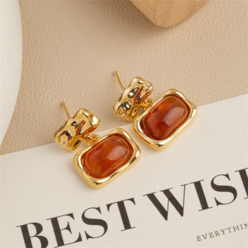 Винтажные квадратные серьги-капли из смолы для женщин, свадебная вечеринка, классические ювелирные изделия, геометрические металлические серьги