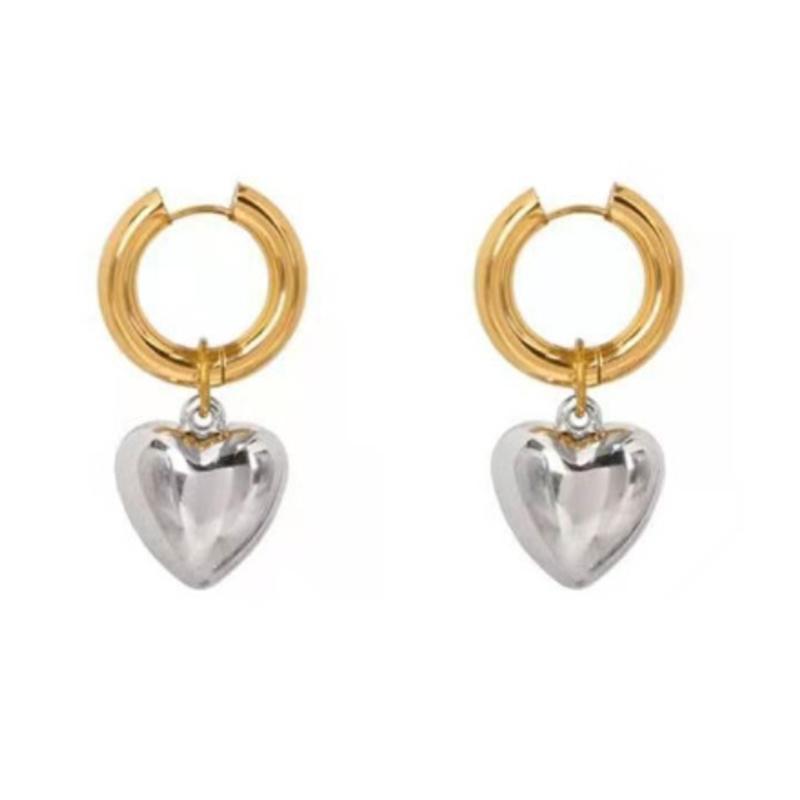Заявление Минималистский Золотой Серебряный Цвет Смешанный Твердый Сердце Подвеска Кольца Серьги Уличный Стиль Корейская Мода Ювелирные Изделия Подарок
