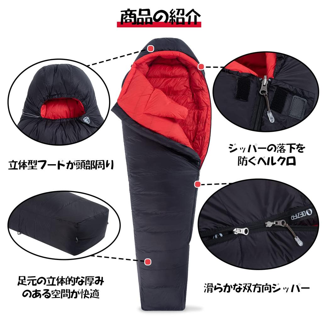 [Отличная защита от холода и удобная форма «коконверта»] Спальные мешки «кокон» изготавливаются с учетом особенностей вашего телосложения, лучше сидят и сохраняют тепло, чем спальные мешки в форме конверта, что делает их очень подходящими для холодных зим.. Ножки имеют трехмерную структуру, поэтому вы не будете чувствовать давления во время сна.. Усовершенствованная версия спального мешка дополнена пуховым воротником-седлом, обеспечивающим теплый и комфортный сон во время зимнего кемпинга.. Наружный и внутренний слои изготовлены из прочного на разрыв нейлона 400T20D. 400T — это сверхплотная ткань с относительно высокой добавленной стоимостью, износостойкостью, хорошим водонепроницаемым эффектом и способностью предотвращать высыпание пуха.