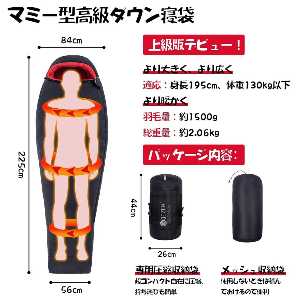 [Сверхлегкий и компактный] Для того чтобы обеспечить пользователям более комфортный сон, модернизированный спальный мешок стал длиннее и просторнее.Использовать размер: 225см x 84см, размер для хранения: 44см х 26см (специальный компрессионный мешок для хранения), вес приблизительно: 2060 К. Он примерно в два раза легче и объемнее спального мешка из полиэстера и хлопка, что делает его очень компактным и удобным для переноски и хранения.. В дополнение к специальному компрессионному мешку для хранения в комплект входит сетчатый мешок для хранения, который продлит срок службы спального мешка.. Храня его в сетчатом мешке для хранения в течение длительного периода времени, вы сможете сохранить пух в хорошем состоянии.