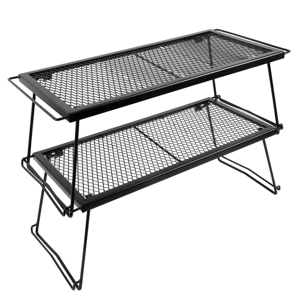 YOLER Полевая стойка сетчатый стол костер 2-х уровневая стальная штабелируемая стойка складная низкая стильная стойка для кемпинга на открытом воздухе полка для хранения MT070