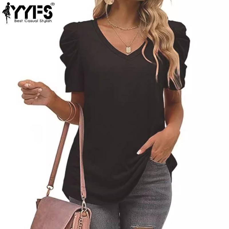 YYFS Женские модные повседневные летние весенние однотонные блузки и рубашки с v-образным вырезом и короткими рукавами с принтом