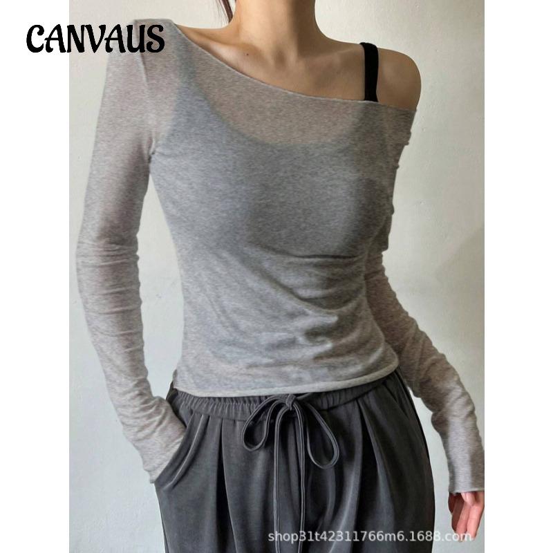 CANVAUS Футболка облегающего кроя с длинными рукавами и открытыми плечами, без бретелек