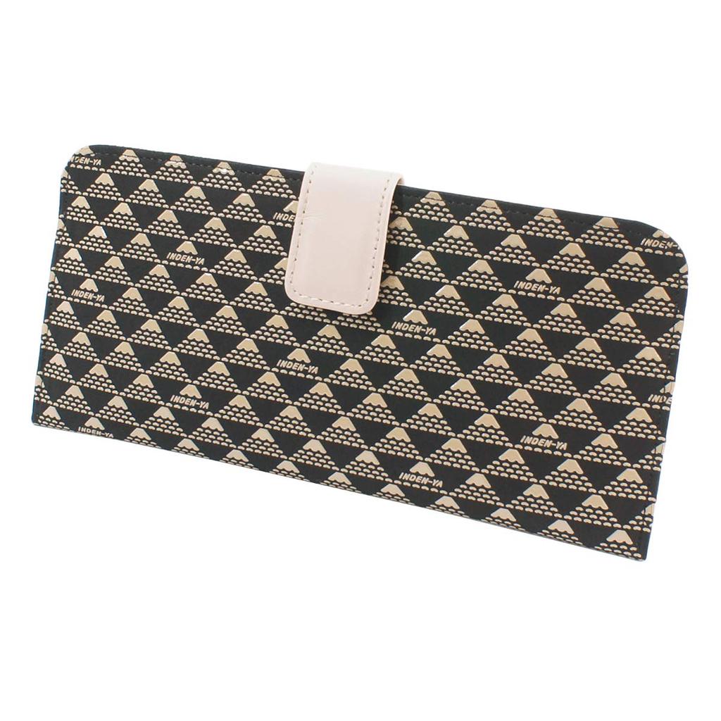 Тонкий длинный кошелек Inden из оленьей кожи с узором «Такане Фудзи», черный x белый лак [Индэня] Гора. 2809-11