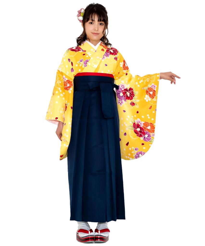 Хакама Выпускной колледж Великолепный B Ямабуки с Хакама [KYOETSU] Комплект, Церемония, Студенты, Женщины, (7. Ханацубаки, LL)