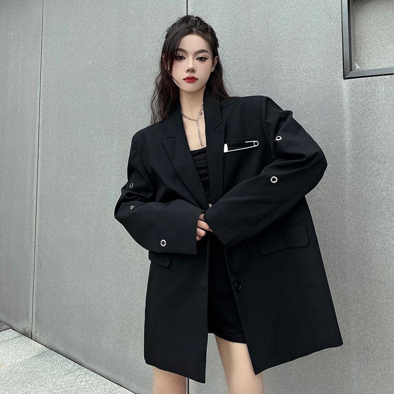 Премиальное черное пальто свободного кроя с уникальным дизайном для женщин, уличный модный шикарный блейзер небольшого размера с первоклассным ощущением
