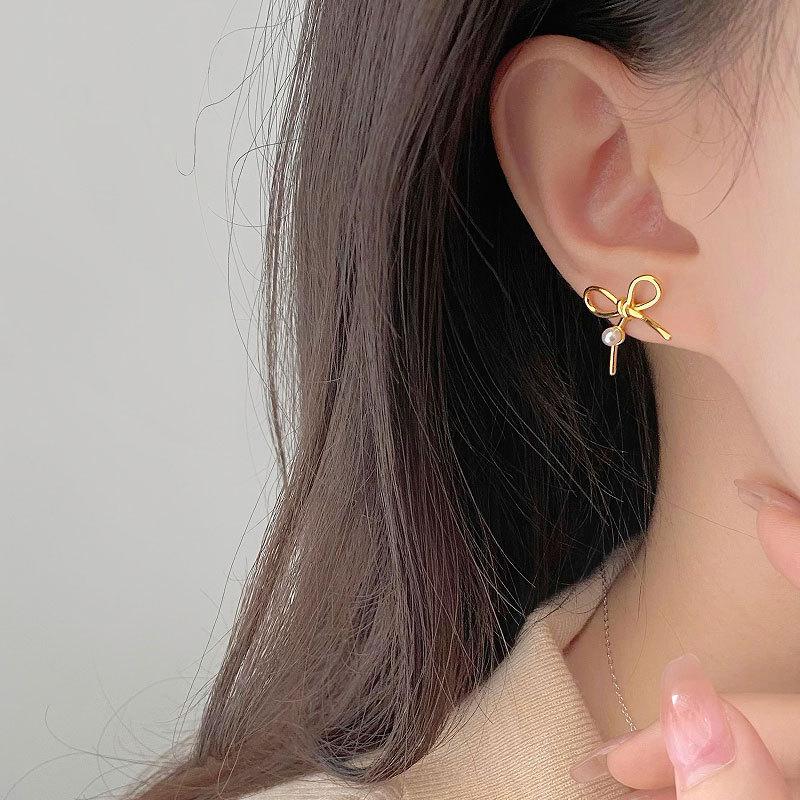 Серьги с жемчугом в форме банта, нишевый дизайн, легкий, роскошный, новый стиль для женщин