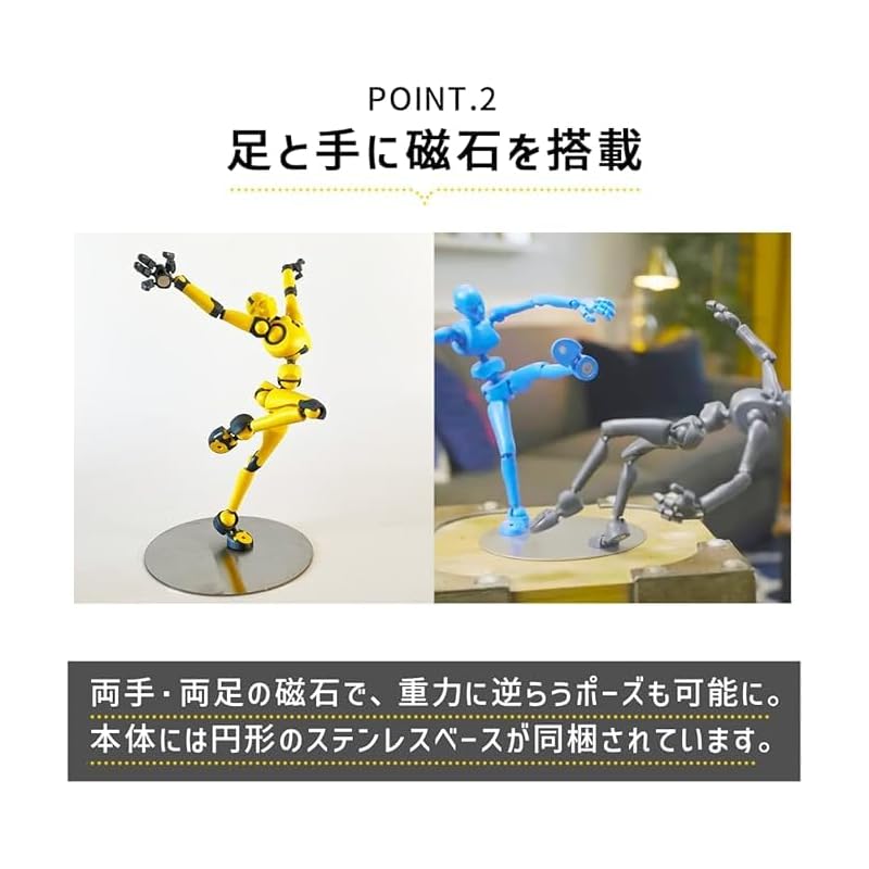 ★ Оснащен магнитами в ногах и руках.: Магниты, прикрепленные к рукам и ногам, поддерживают динамичные движения и позволяют принимать позы, бросающие вызов гравитации. Круглое основание из нержавеющей стали (для магнитов) входит в комплект, а если использовать пластину, то диапазон поз будет бесконечным.