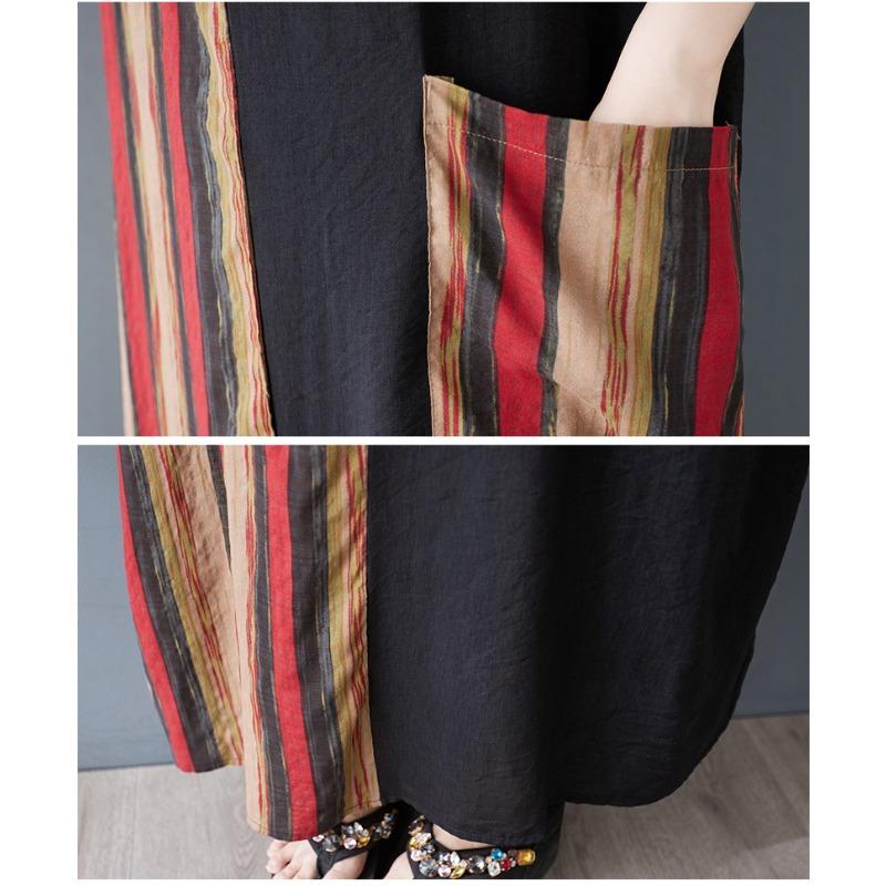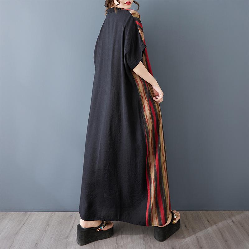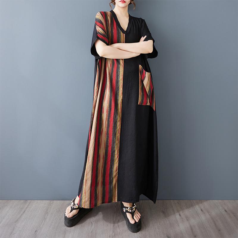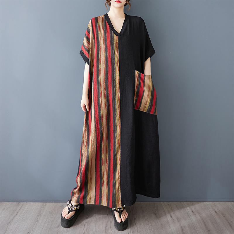 DIMANAF 2025 Летнее Женское Длинное Платье Большого Размера Винтажное Базовое Полосатое С Карманом Оверсайз Повседневное С Принтом Свободное Платье