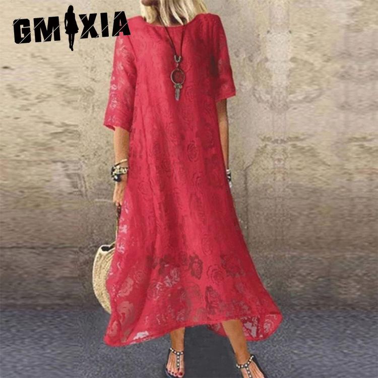 GMXIA Летние женские платья с круглым вырезом, коротким рукавом, кружевные, длинные, повседневные — купить товар онлайн с бесплатной доставкой по всему миру!