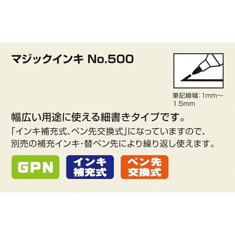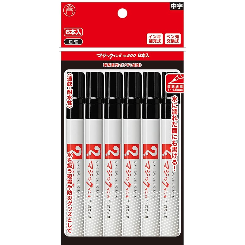 Чернильная ручка Teranishi Chemical magic №500 с тонкими буквами, средние символы, черного цвета, 6 штук M500-T1-6P