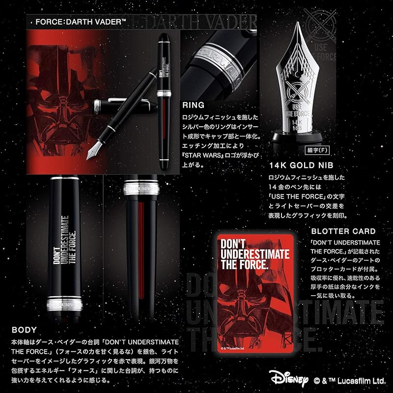 [Перо] Большая ручка из 14-каратного золота с родиевым покрытием #2 Force DV Fine Point (F)