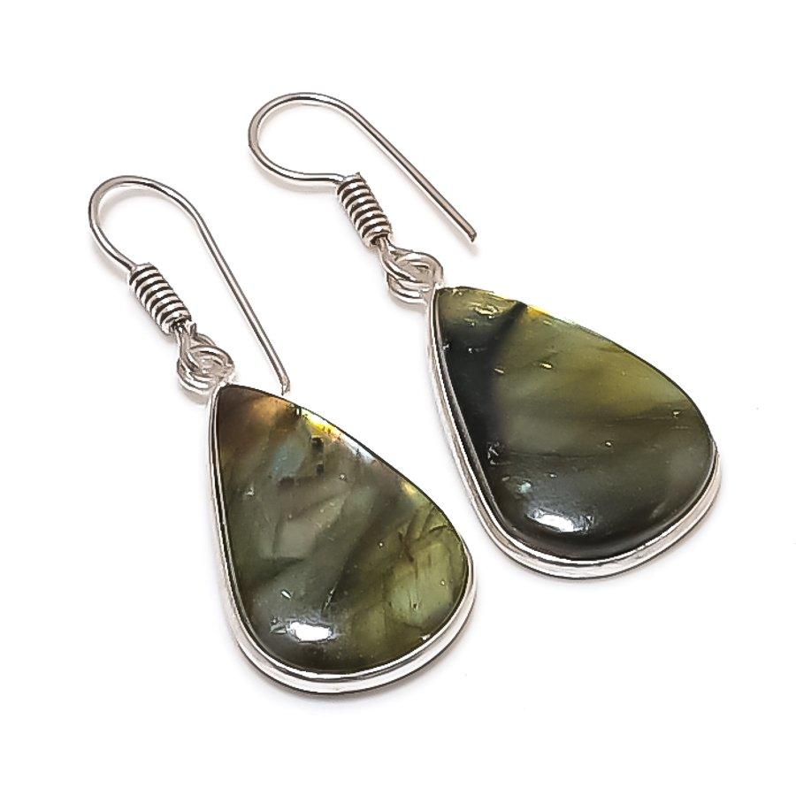 Натуральный лабрадорит драгоценный камень 925 стерлинговое серебро ювелирное изделие серьга 1,65" h1V24