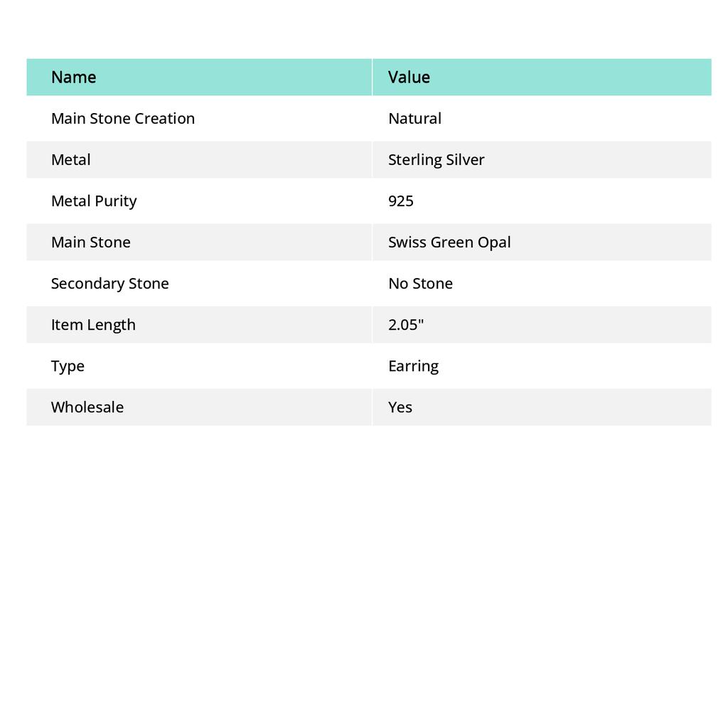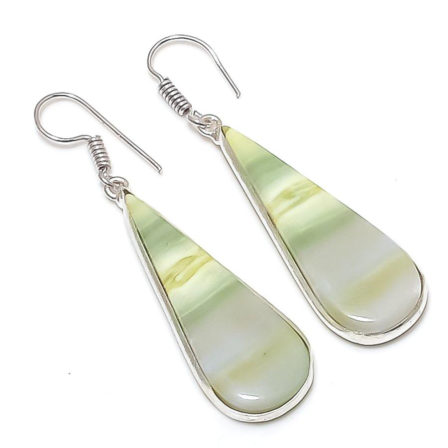 Серьги из стерлингового серебра 925 пробы с натуральным швейцарским зеленым опалом 2,05 дюйма s9U82