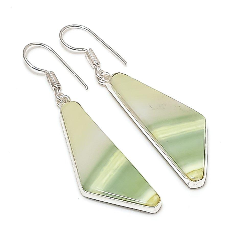 Серьги из натурального швейцарского зеленого опала из стерлингового серебра 925 пробы 2,01 дюйма P5j48