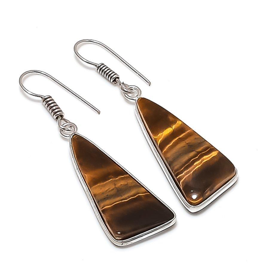 Natural Tiger Eye Gemstone 925 Sterling Silver Jewelry Earring 1.93" K0F64 — купить товар онлайн с бесплатной доставкой до всему миру!