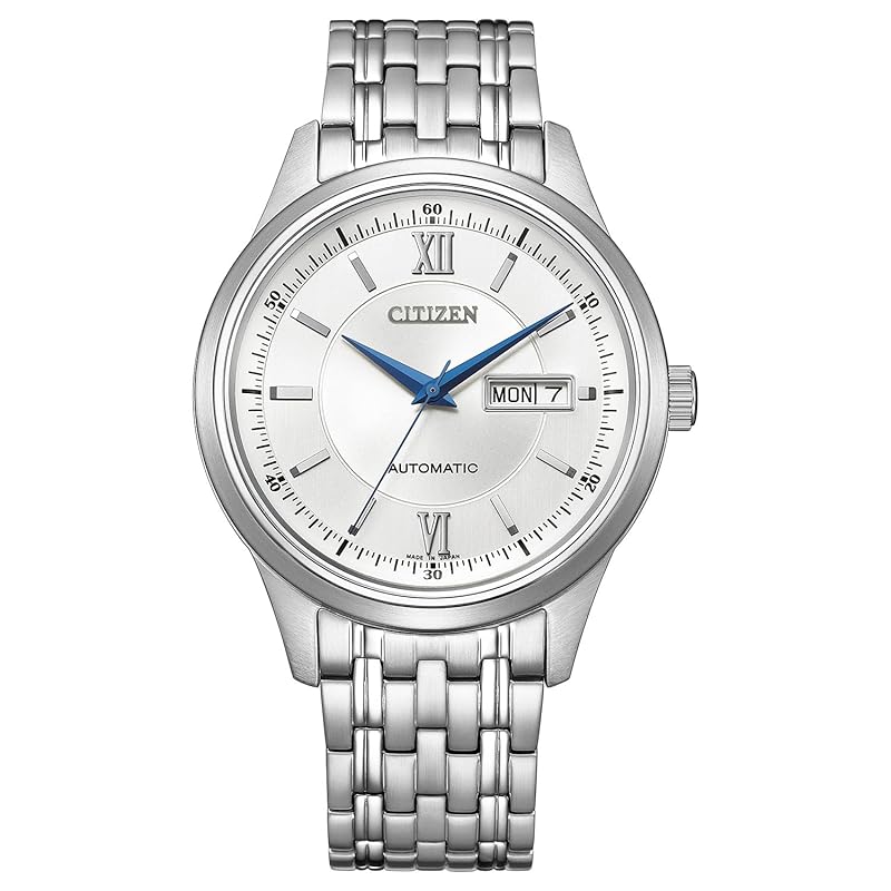 [КОЛЛЕКЦИЯ CITIZEN, которая стремится к основным характеристикам и дизайну часов] Классические механические часы с автоподзаводом и индикацией дня и даты, которые легко сочетаются с любым стилем одежды. В часах используется калибр, оснащенный «функцией остановки секундной стрелки», которая останавливает секундную стрелку, когда заводная головка вытягивается при установке времени. Популярная модель механических часов была переработана.