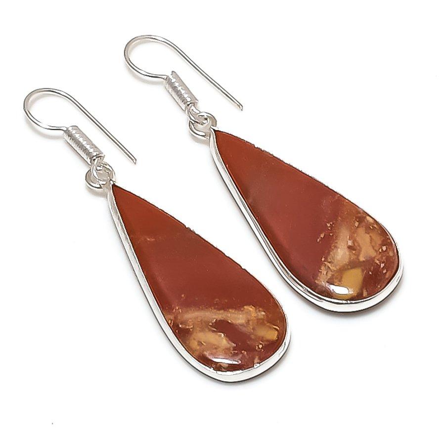 Серьги из стерлингового серебра 925 пробы с натуральным драгоценным камнем мукаит 2,01 дюйма F1I69