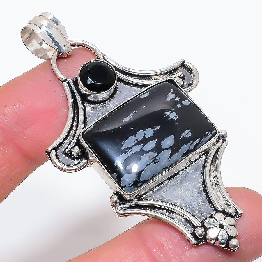 Обсидиан Снежный, Шпинель Ручной работы Подвеска из серебра 925 пробы 2.68"