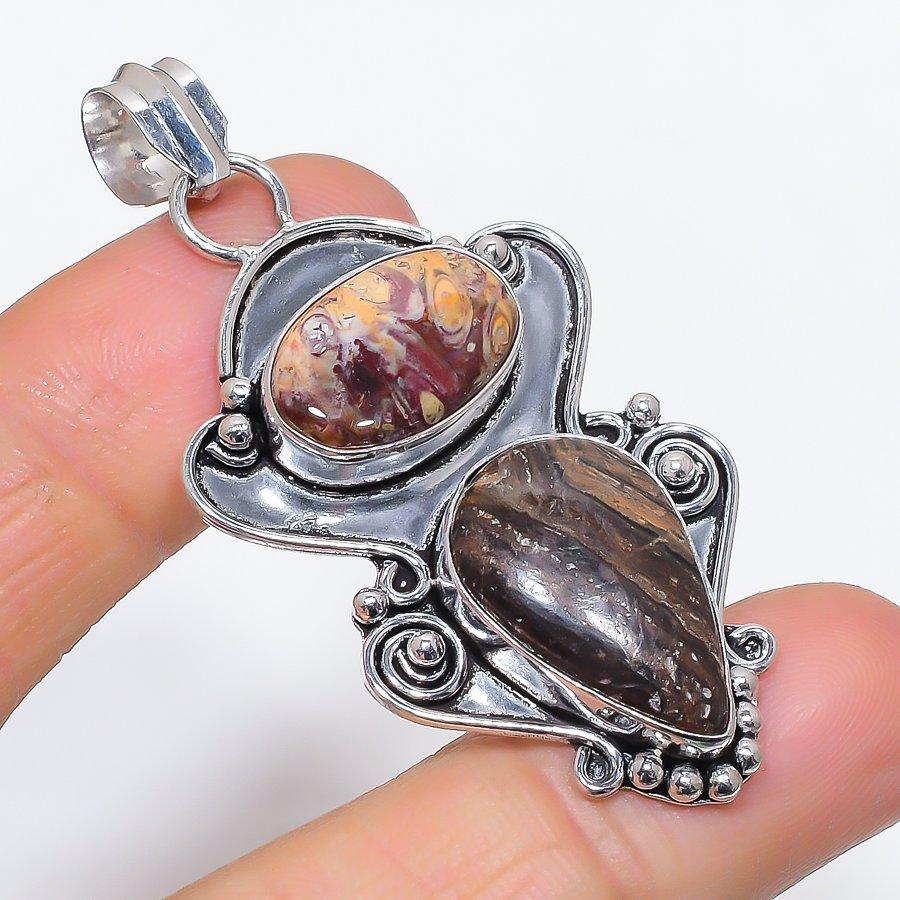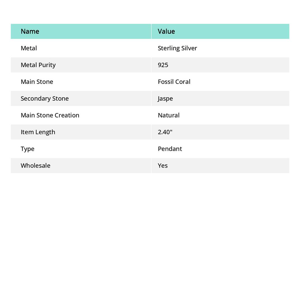 Ископаемый коралл, Яшма Ручная работа 925 стерлинговое серебро Ювелирная подвеска 2,40"