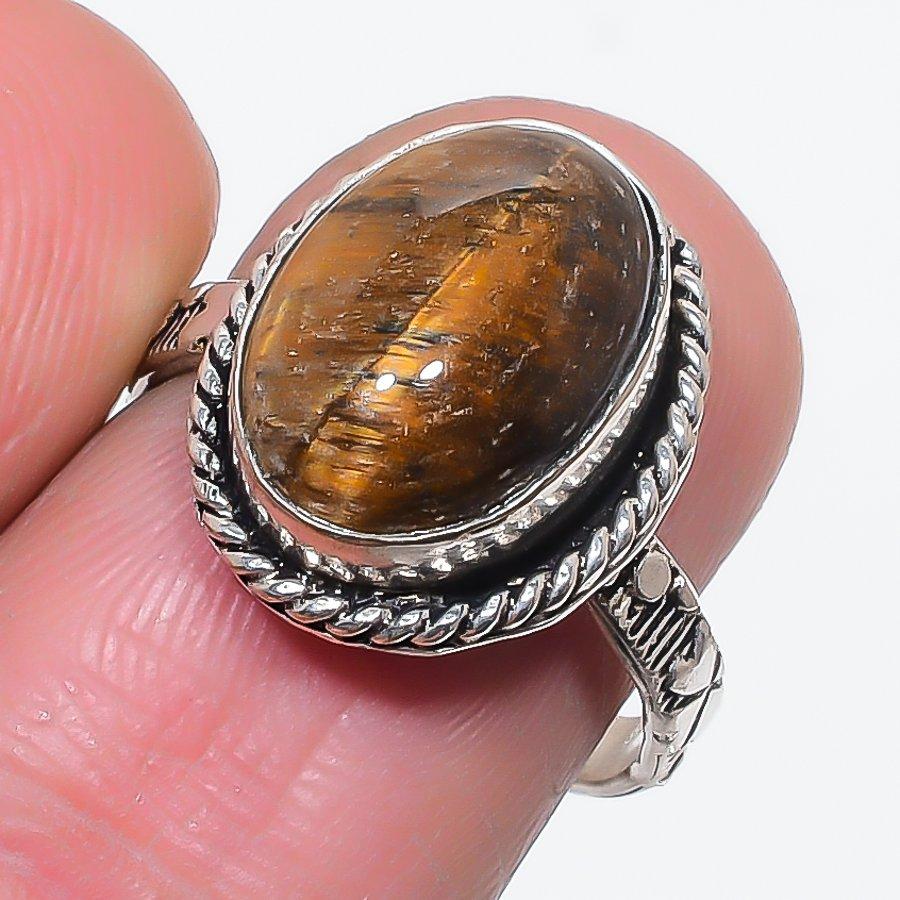 Тигровый глаз Ручная работа Серебро 925 пробы Ювелирное кольцо Размер 7 c5H52