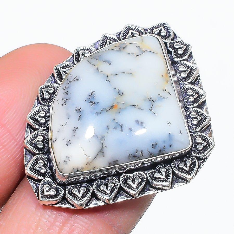 Дендритовый Опал Ручной Работы Ювелирное Изделие из Серебра 925 пробы Кольцо Размер 6.5 q2f08