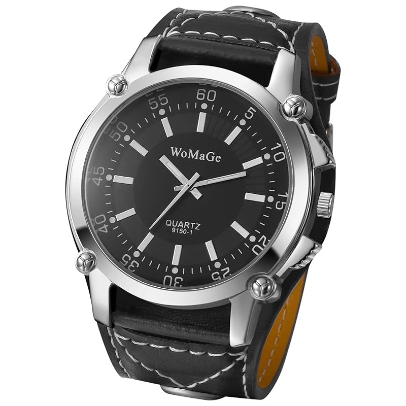 Часы мужские кожаные ремень рок водонепроницаемый: аналоговые стимпанк велосипед кожаный ремень широкие черные кварцевые часы модные часы - день отца день рождения Рождество