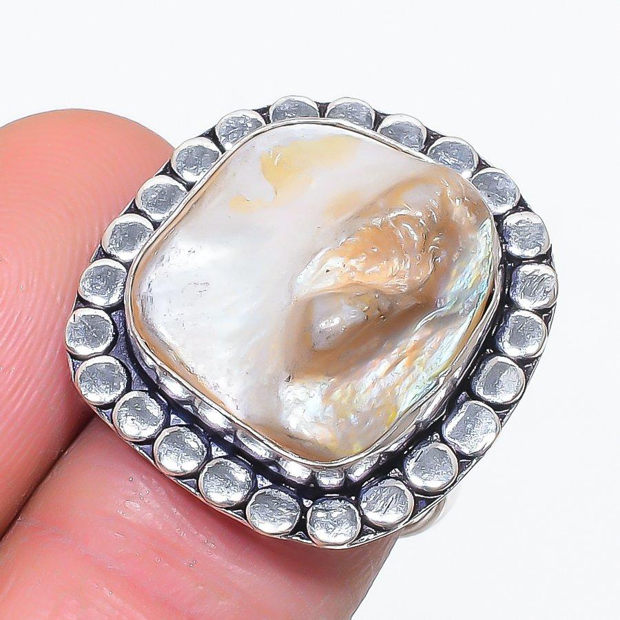 Натуральный жемчуг Бива Драгоценный камень Серебро 925 пробы Ювелирное кольцо Размер 7 m4W91