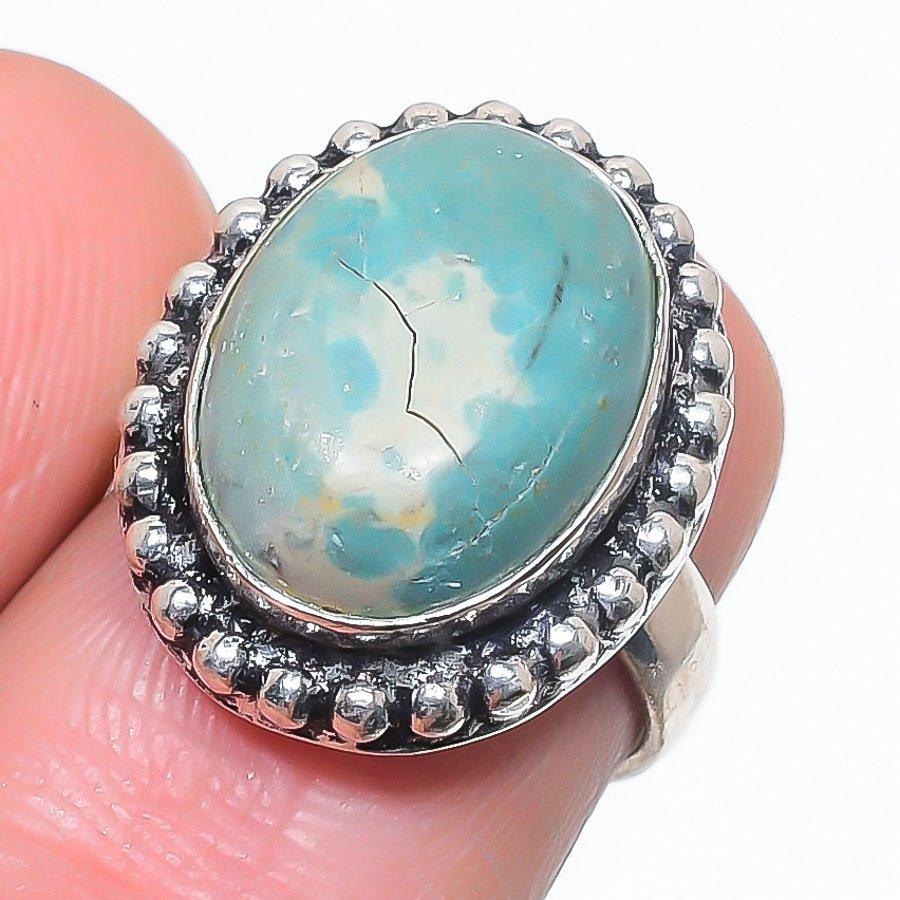 Бирюза Санта-Роза Ручная работа Ювелирное изделие Кольцо из стерлингового серебра 925 пробы Размер 6 j4A98