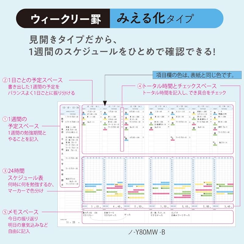 Планировщик для записей в кампусе Kokuyo, еженедельная линейка A5, синий NO-Y82MW-B