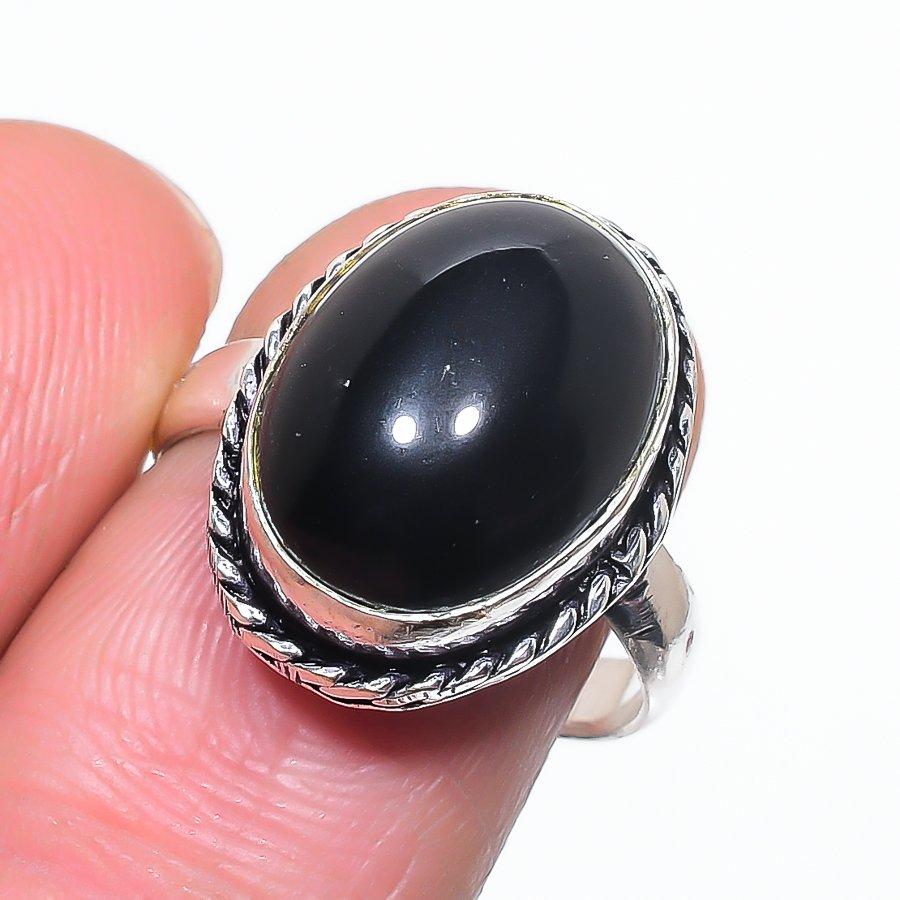 Кольцо из серебра 925 пробы с черным ониксом ручной работы, размер 7,5 t2C04