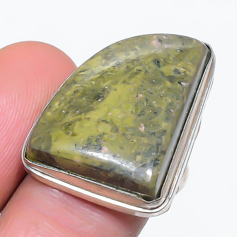 Унакит Ручная работа Серебро 925 пробы Ювелирное кольцо Размер 7 S3k92