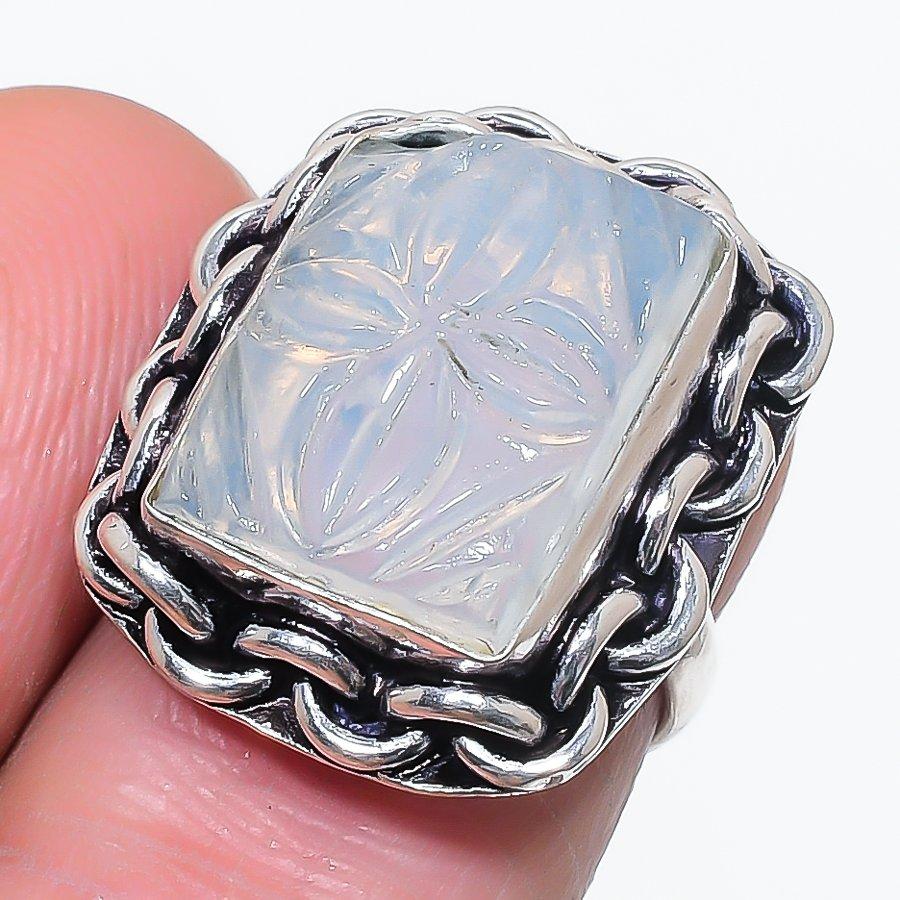 Молочный опал ручной работы серебро 925 пробы ювелирное кольцо размер 5.5 N0w08